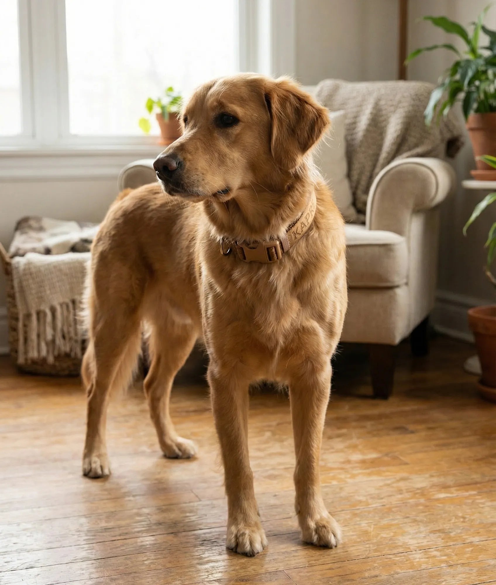 - Custom Kapre & Co woven nylon webbing, designed to match our harnesses and leashes